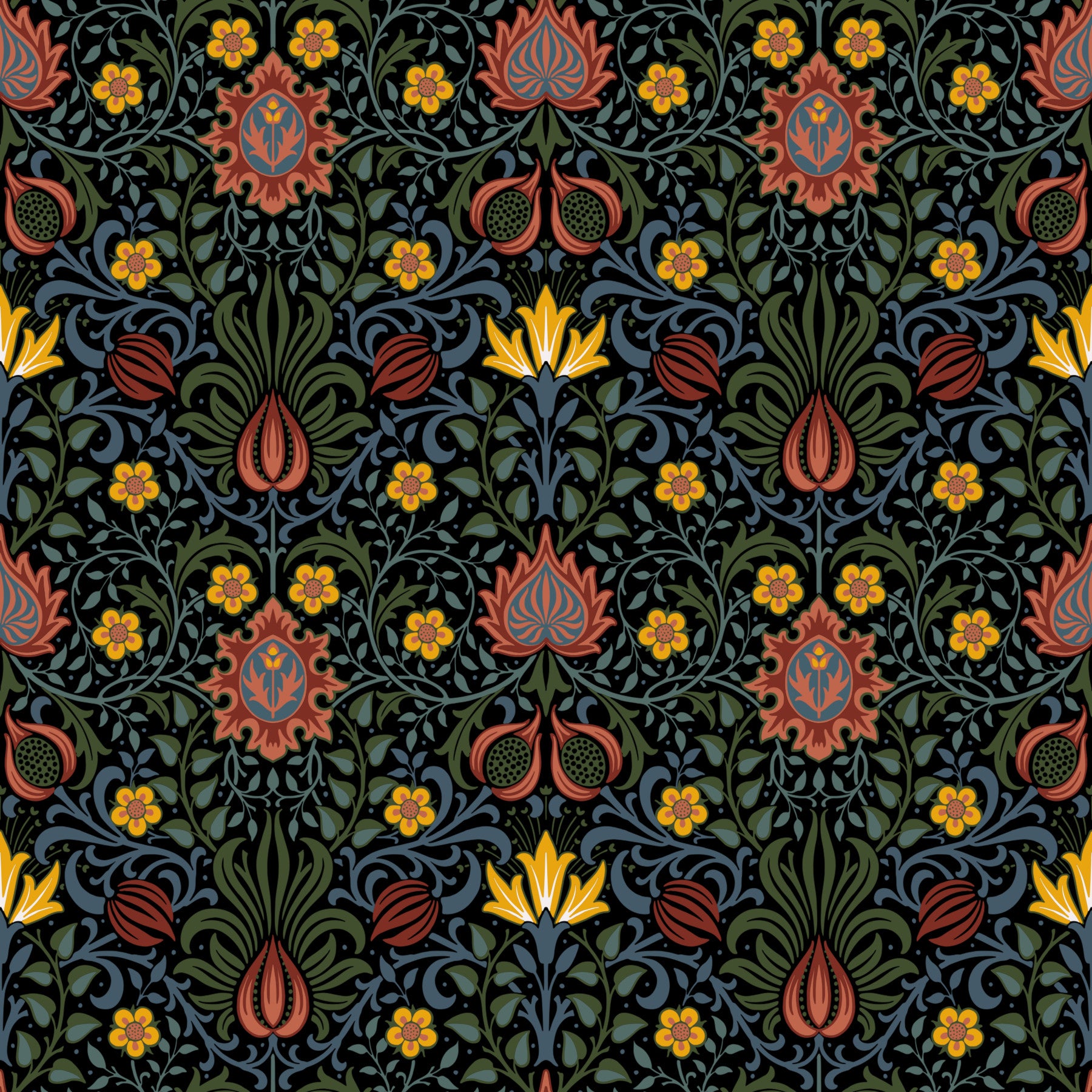 William Morris’s“Persian is a richly detailed Arts and Crafts pattern inspired by oriental textiles and Islamic ornament. Designed for Morris & Co, it features scrolling foliage, stylized blossoms, and intricate symmetry, echoing Persian carpets and Victorian fascination with exotic craftsmanship. Ideal for wallpaper, fabric, upholstery, and curtains, it brings heritage charm to interiors. Keywords: William Morris, Persian, Arts and Crafts, Victorian, floral, botanical, ornamental, textile, wallpaper, surface pattern, historic, decorative, repeat, heritage, Morris & Co, timeless, classic home decor.