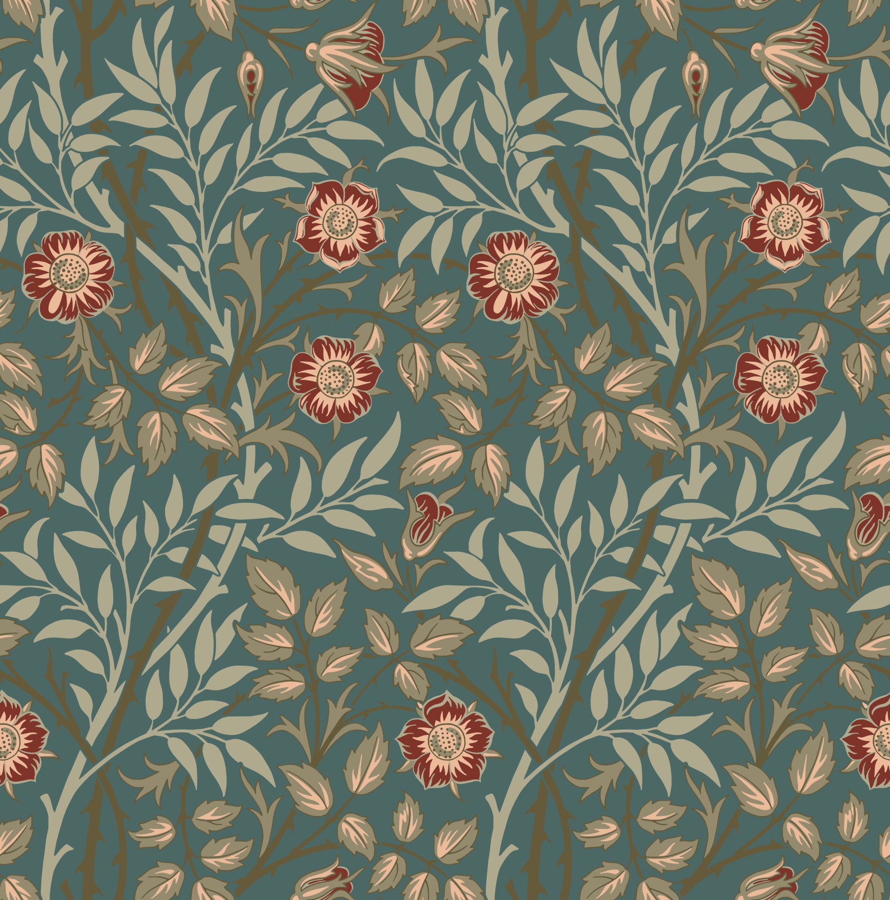 William Morris Sweet Briar Petrol Wallpaper⁠