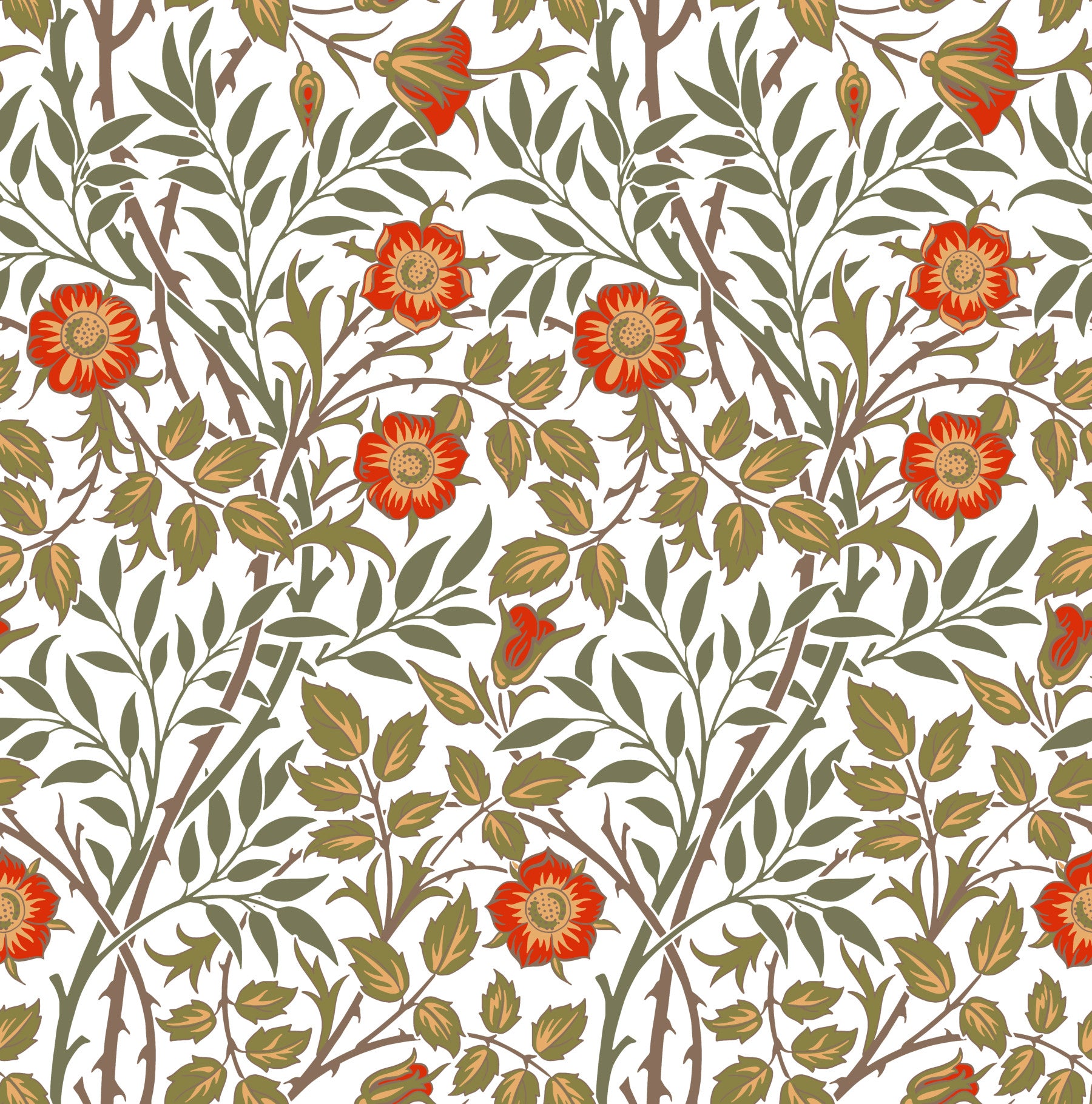 William Morris’s Sweet Briar is an elegant Arts and Crafts pattern featuring trailing rose branches with delicate blossoms, leaves, and thorns arranged in a flowing repeat. Created for Morris & Co in the late Victorian era, it reflects his love of English gardens and medieval romance. Perfect for wallpaper, fabric, upholstery, and curtains, it adds heritage charm and timeless beauty. Keywords: William Morris, Sweet Briar, Arts and Crafts, Victorian, floral, botanical, roses, wallpaper, textile, historic, ornamental, repeat, heritage, decorative, Morris & Co, cottagecore, classic home decor.