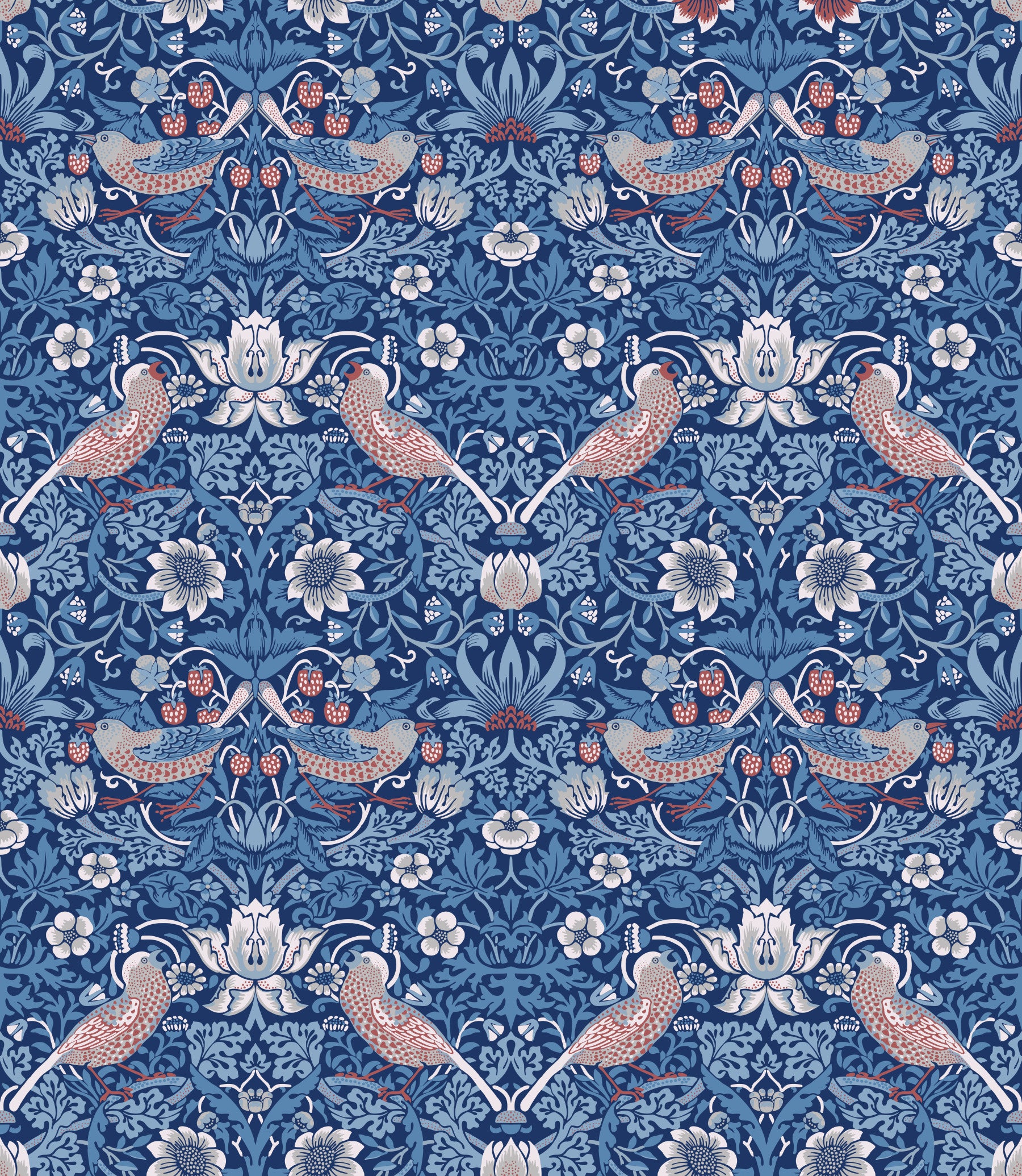William Morris - The Strawberry Thief - Summer Blue Wallpaper⁠