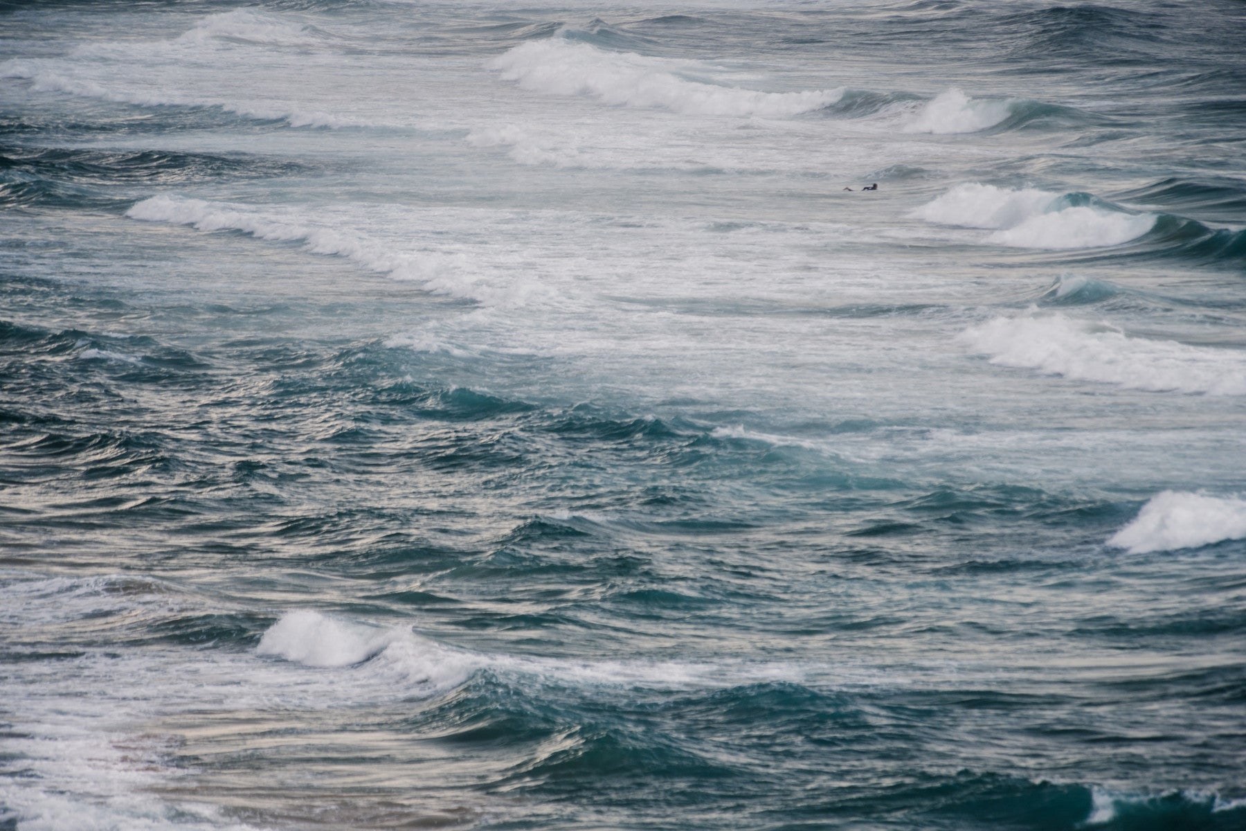 Embrace the raw energy of the ocean with Winter Surfing VI a captivating wallpaper that showcases the thrill of riding the waves in the heart of winter. The image captures the churning surface of the sea, with its textured waves ranging from deep blues to frothy whites. The scene is dominated by the powerful expanse of the water, hinting at the cold, untamed beauty of the winter season. A lone surfer braves the elements, a tiny speck against the vastness, adding a touch of human resilience and adventure to the scene. This wallpaper is a stunning reminder of the challenges and rewards of connecting with nature in its most elemental form, perfect for those who appreciate the power and serenity of the ocean, even in the coldest months.