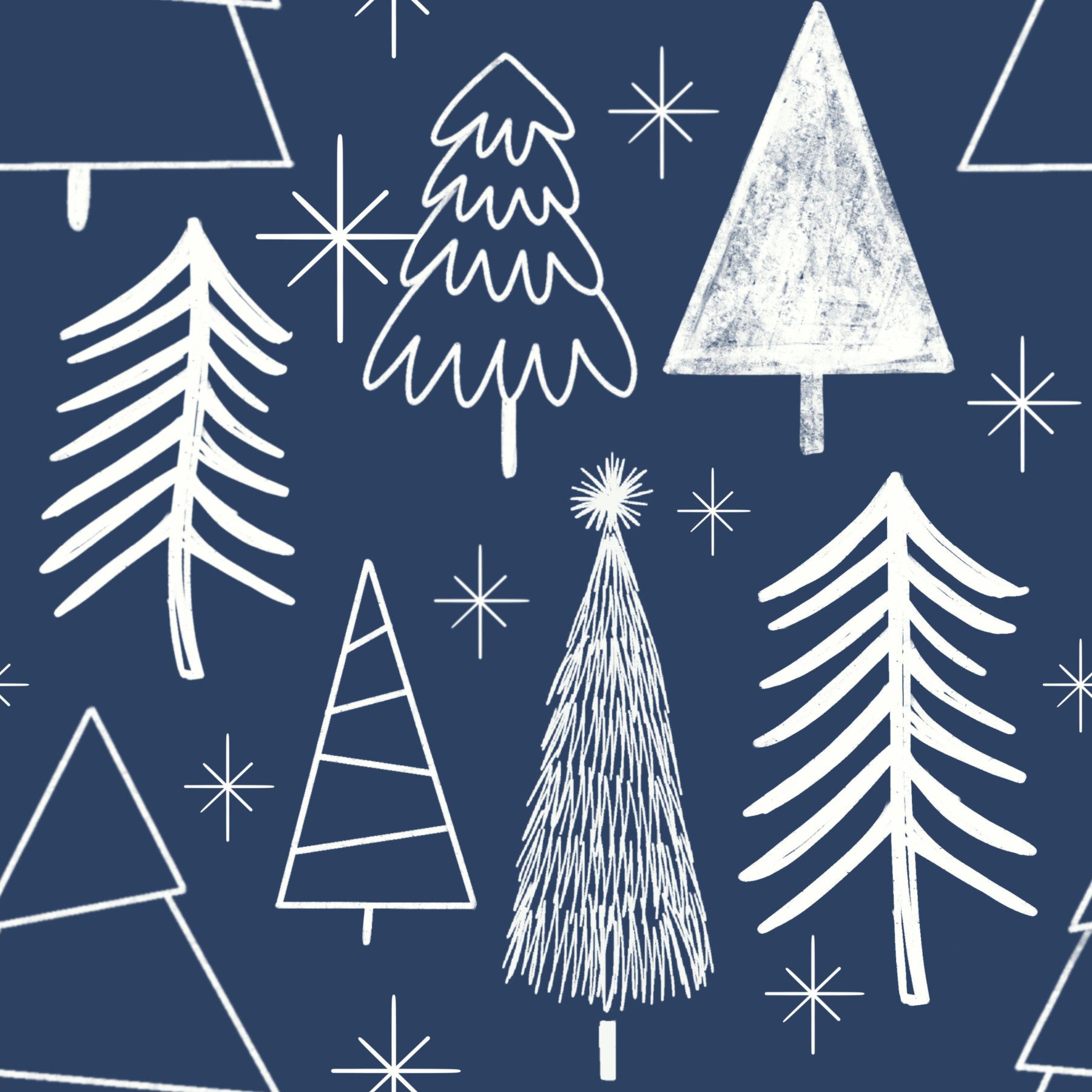 Graphic white evergreen shapes on dark wallpaper for walls.
