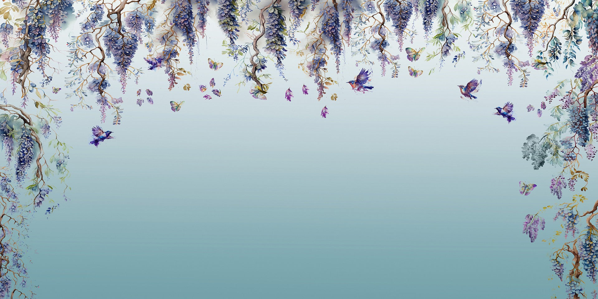 Add a touch of romance with wisteria blue wallpaper mural design.