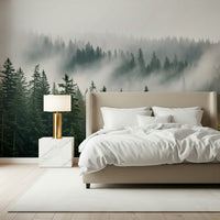Create a tranquil haven with this sophisticated wallpaper for walls, featuring a lush forest immersed in a soft, hazy mist. The blend of deep greens and pale grays adds depth and serenity to any interior. Ideal for bedrooms, living rooms, or study areas, this design promotes relaxation and complements a wide range of decorative styles. It is designed to bring the soothing qualities of nature indoors, fostering a calm and serene atmosphere in your home. It makes for an immersive backdrop that elevates the feeling of tranquility in your interior spaces.