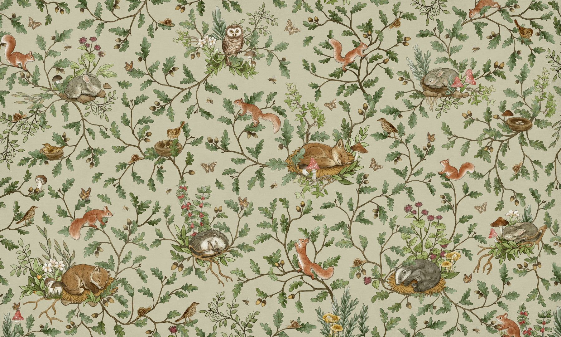 Pattern showcasing a whimsical forest in Woodland Naptime Tales Wall Mural