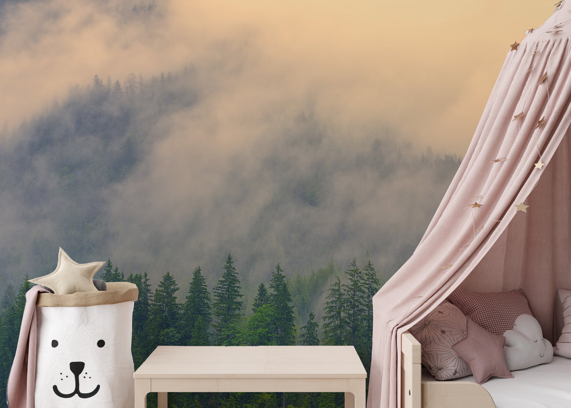 Foggy woodland wall design