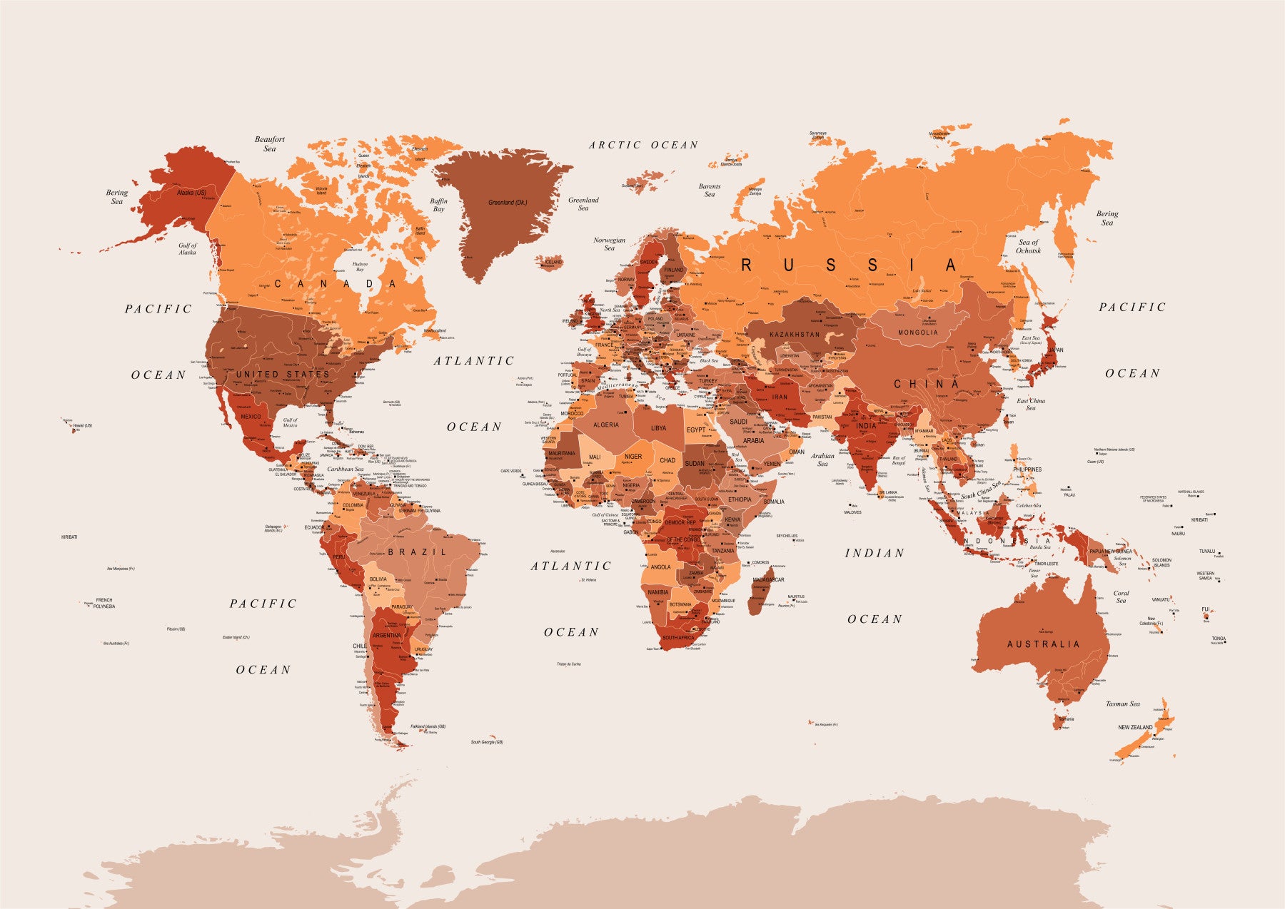 Global wall mural in burnt orange tones