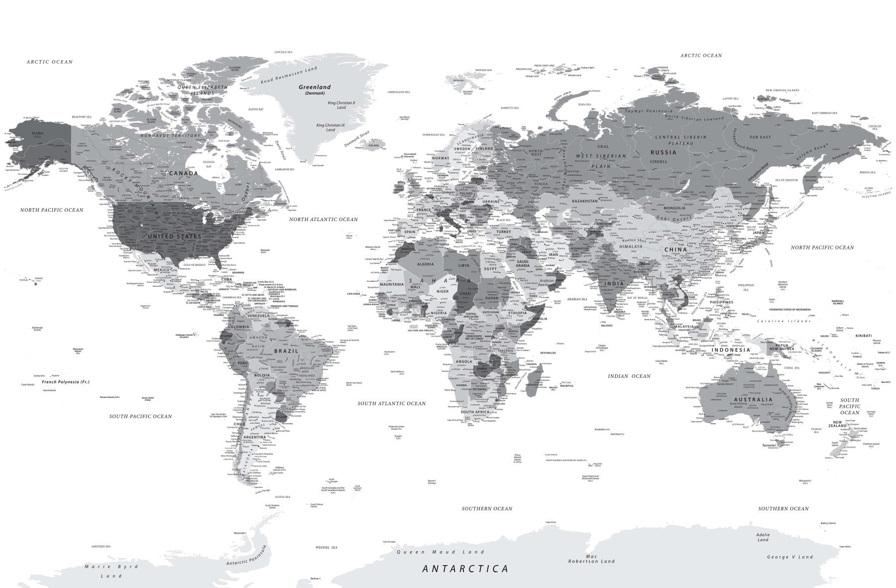 Explore a meticulously detailed grayscale world map, perfect for adding a sophisticated and understated touch to your desktop. The highly detailed rendering showcases every country's borders and major cities, offering a visually engaging yet calming aesthetic. Its monochromatic palette provides a timeless elegance, making it a versatile choice for any background. This map wallpaper transcends mere geography; it's a sophisticated statement of global awareness and visual interest.