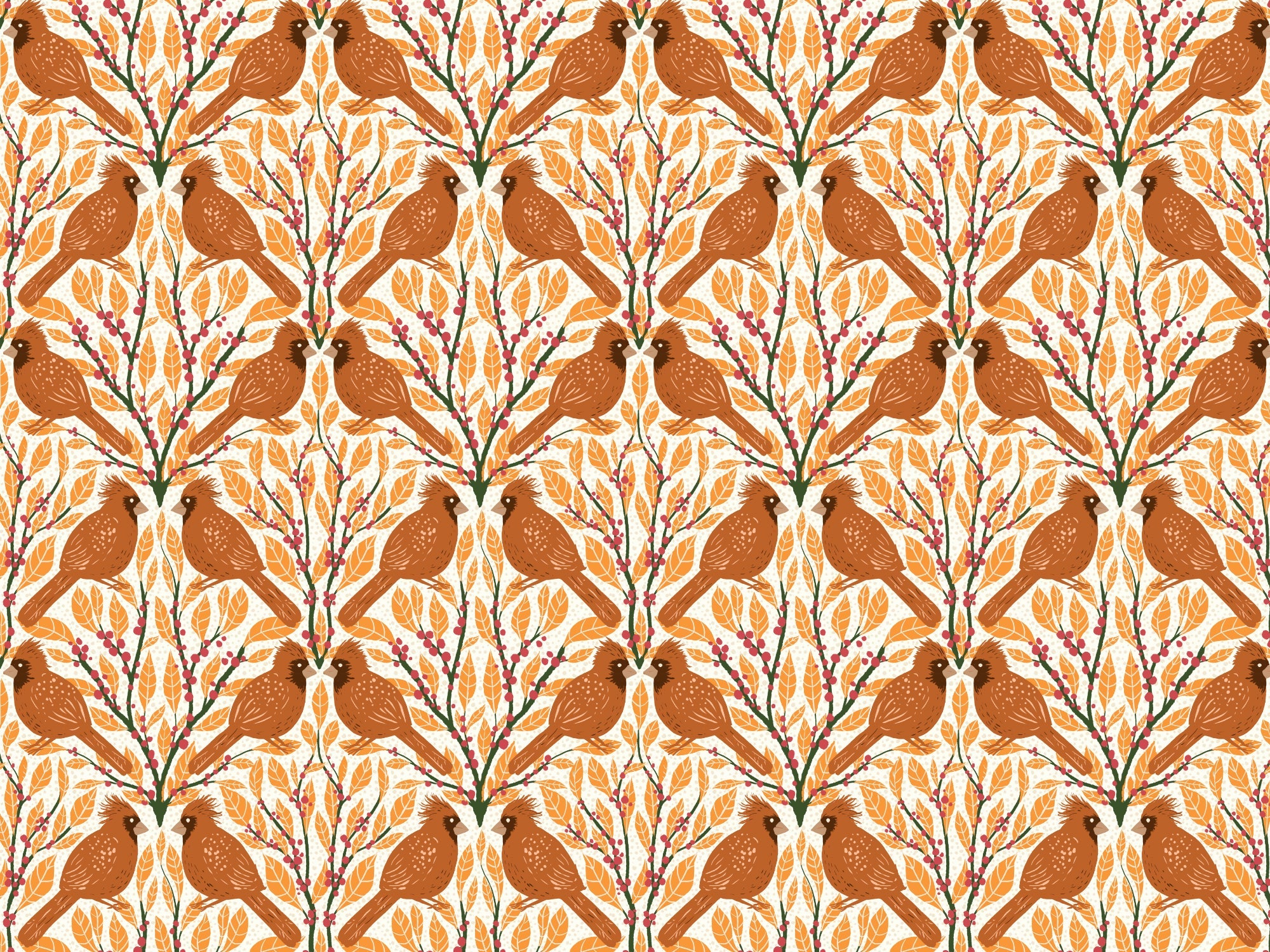 Nature-inspired yellow cardinals wallpaper for cozy living spaces.
