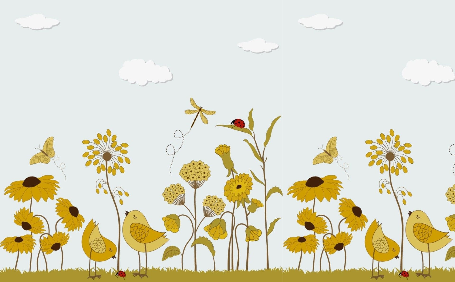 Yellow Flower with Birds Wallpaper Mural - Giffywalls