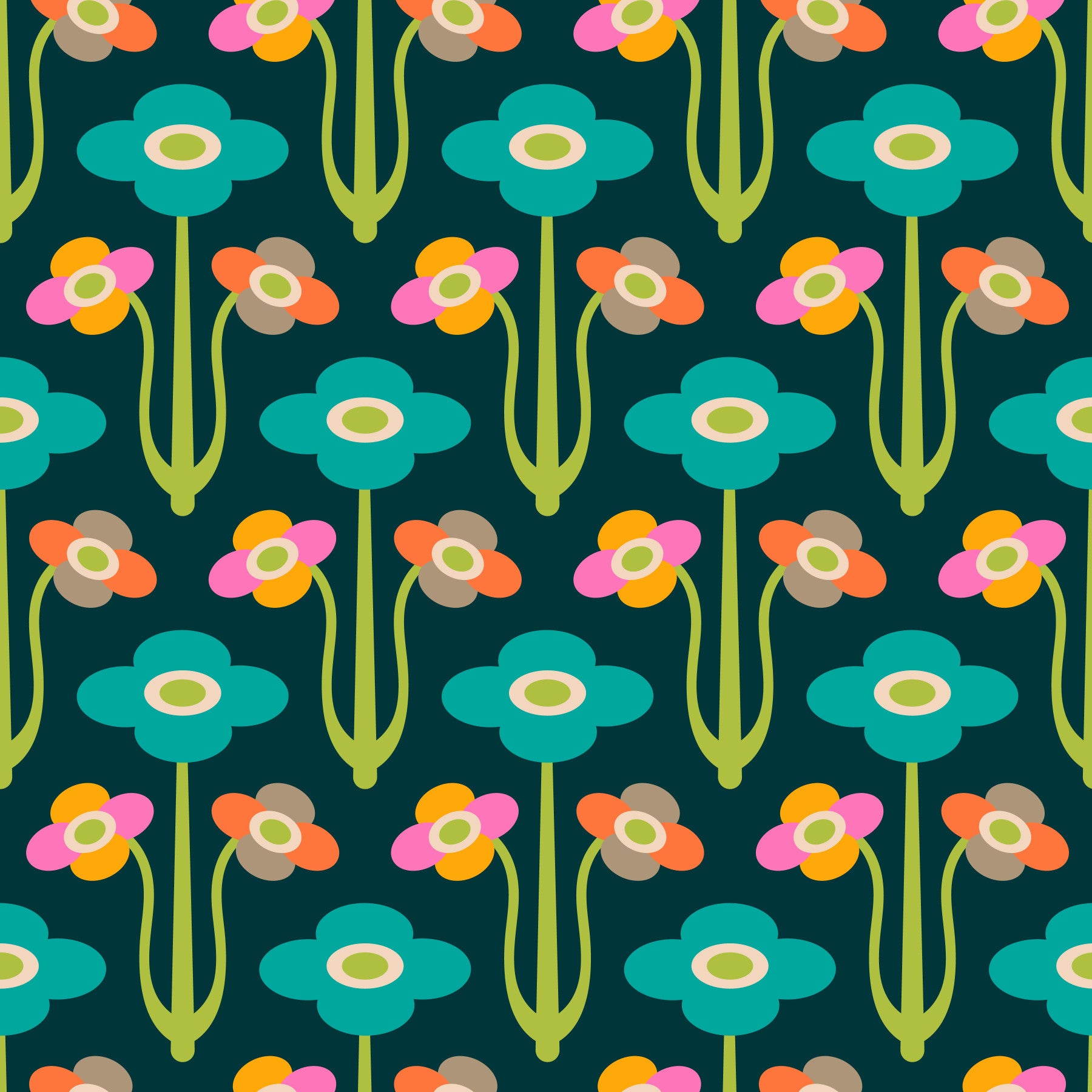 Yvette Mid Century Modern Scandi Retro Floral Rainbow Brights Dark Green Wallpaper⁠