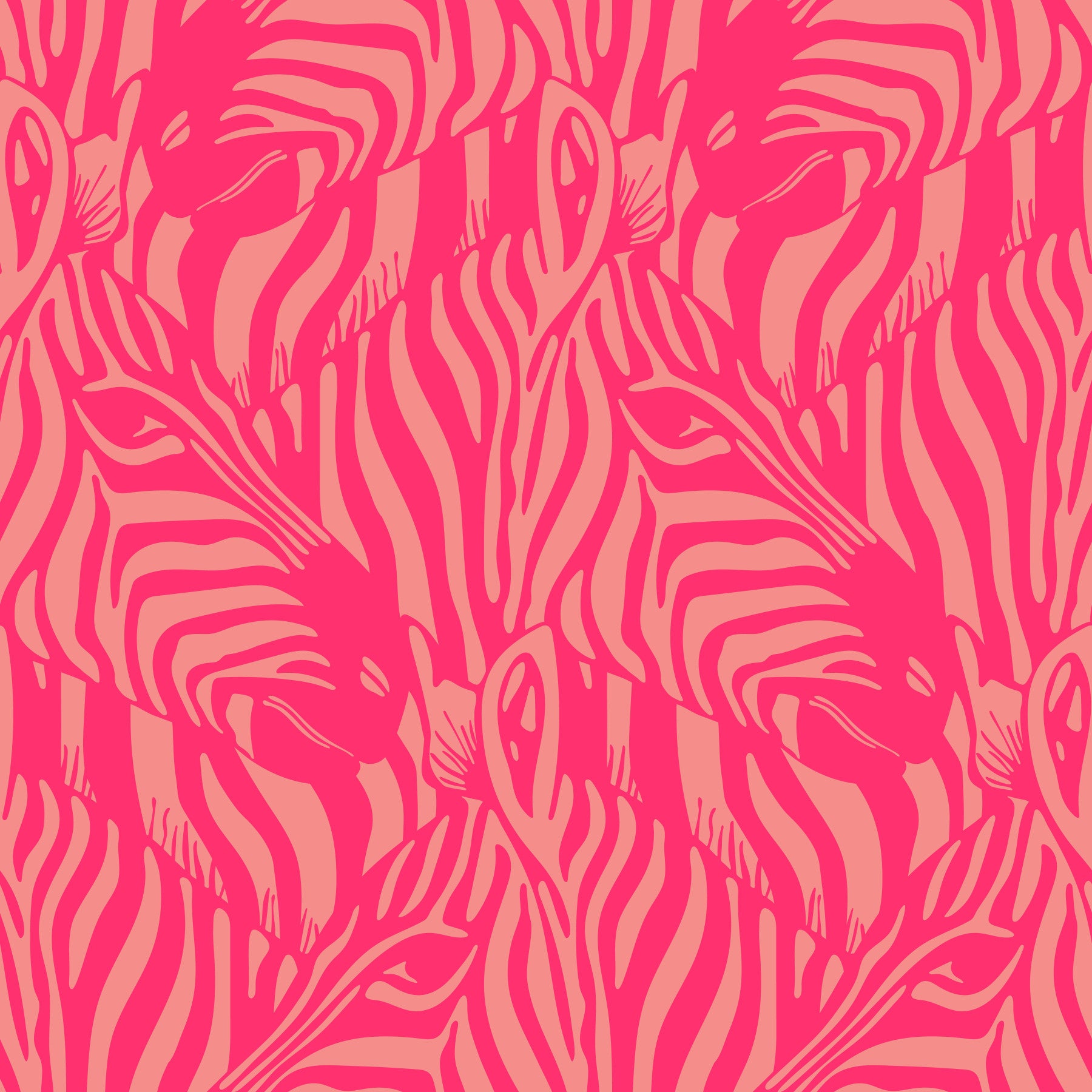 Immerse yourself in the untamed beauty of the African savanna with this captivating vibrant "Zebra Herd" wallpaper that features a mesmerizing pattern of interlocking zebra heads. The striking bright colours of Hot Pink and Blush Peach create a visually stunning display that manages to be bold, graphic and wild, and elegantly glamorous at the same time! Perfect for adding a touch of natural sophistication to any space, this modern take on classic zebra stripe designs brings the spirit of the wild into your home. Whether you're a wildlife enthusiast or simply appreciate refined design, this wallpaper will transform your walls into a work of art. This pattern design is also available in Other Colourways too! Original wallpaper pattern design by Jackie Tahara of UnBlink Studio.