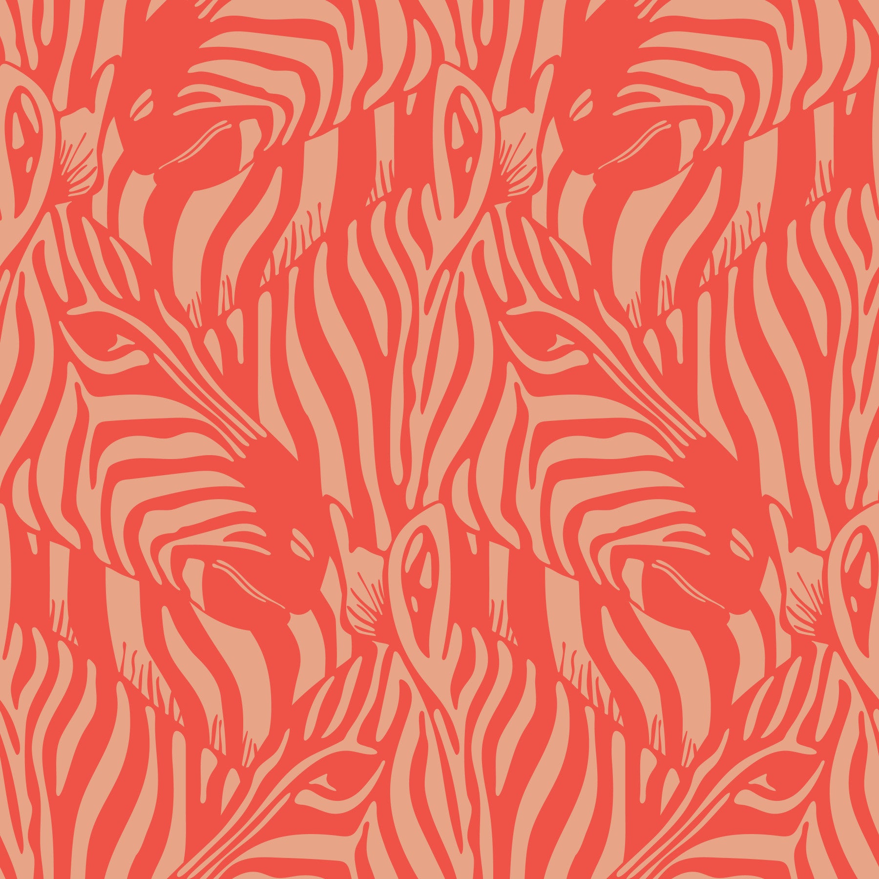 Immerse yourself in the untamed beauty of the African savanna with this captivating bright Zebra Herd wallpaper that features a mesmerizing pattern of interlocking zebra heads. The gorgeous warm desert colours of Red Orange and Buff create a visually stunning display that manages to be bold, graphic and wild, and elegantly warm at the same time! Perfect for adding a touch of natural sophistication to any space, this modern take on classic zebra stripe designs brings the spirit of the wild into your home. Whether you're a wildlife enthusiast or simply appreciate refined design, this wallpaper will transform your walls into a work of art. This pattern design is also available in Other Colourways too! Original wallpaper pattern design by Jackie Tahara of UnBlink Studio.